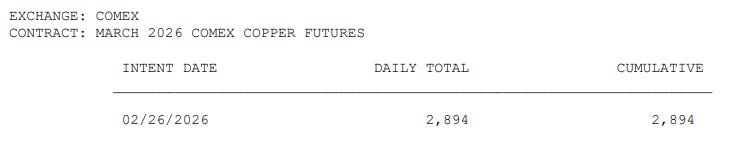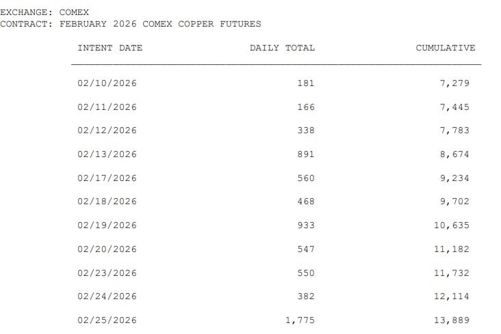 The paradox explained: February’s “record 13,889 delivery notices” (173,612 short tons) represented in-warehouse transfers, not physical extraction. Buyers took ownership but kept metal in CME-approved facilities to preserve “tariff-exempt” status for 2027. COMEX saw net inflows of +42,000 tonnes in February—accumulation, not extraction. Salt Lake City (+62,000t recent months), Tucson (+35,000t), Baltimore, and New Orleans absorbed flows as “strategic sequestration”—metal physically present but economically unavailable.